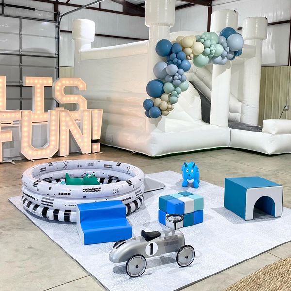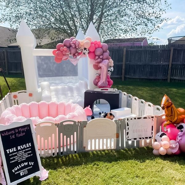 Bounce is 6ft W X 8.7ft D X 7ft H